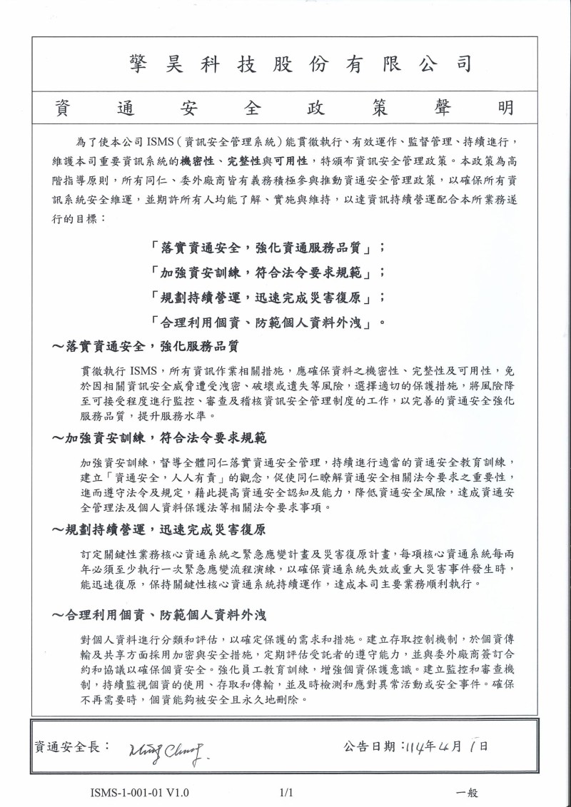 擎昊科技資訊安全政策