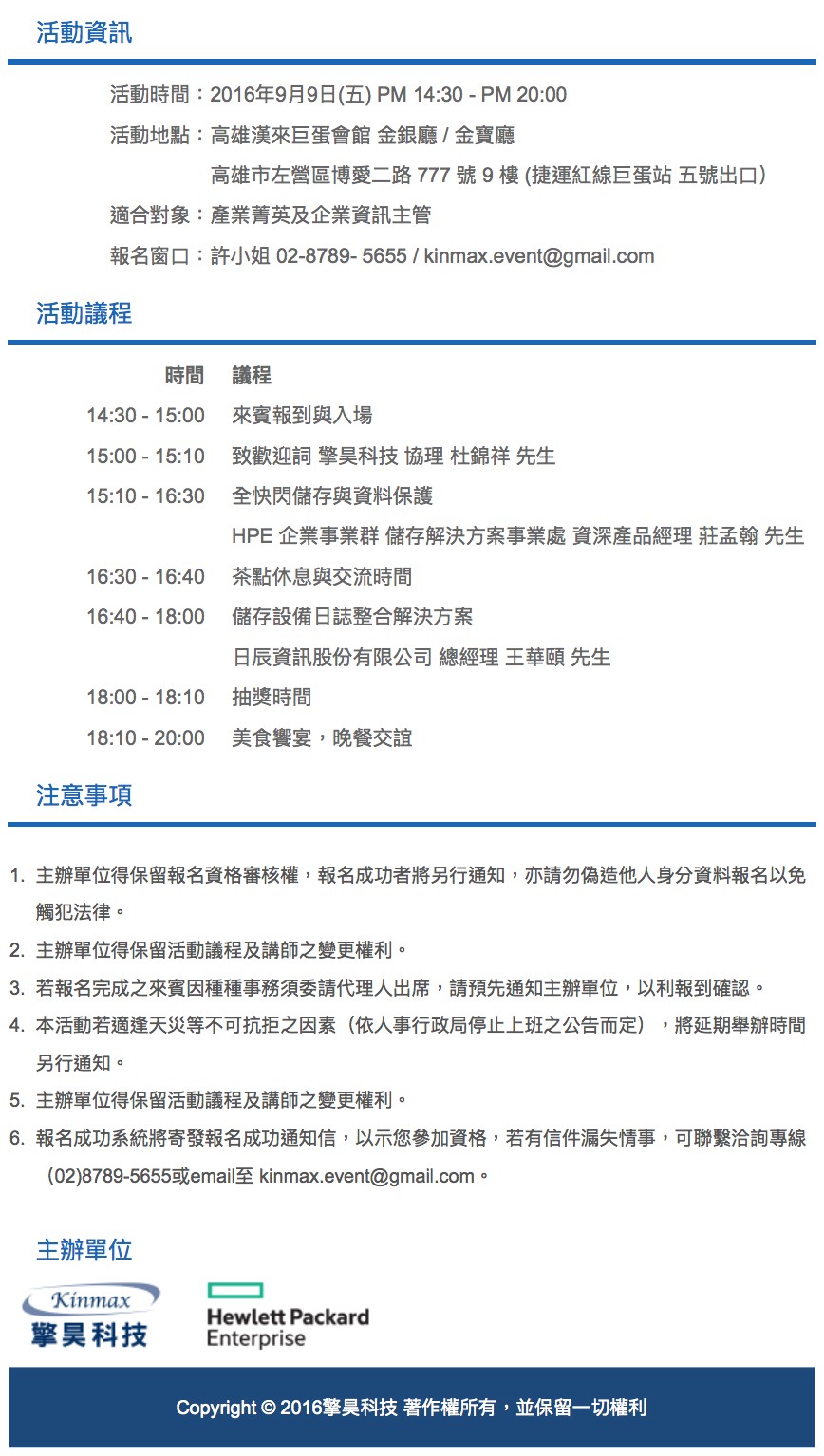 活動訊息 : 關鍵應用效能最優化解決方案 研討會暨晚宴 - 2016.9.9(五) 高雄