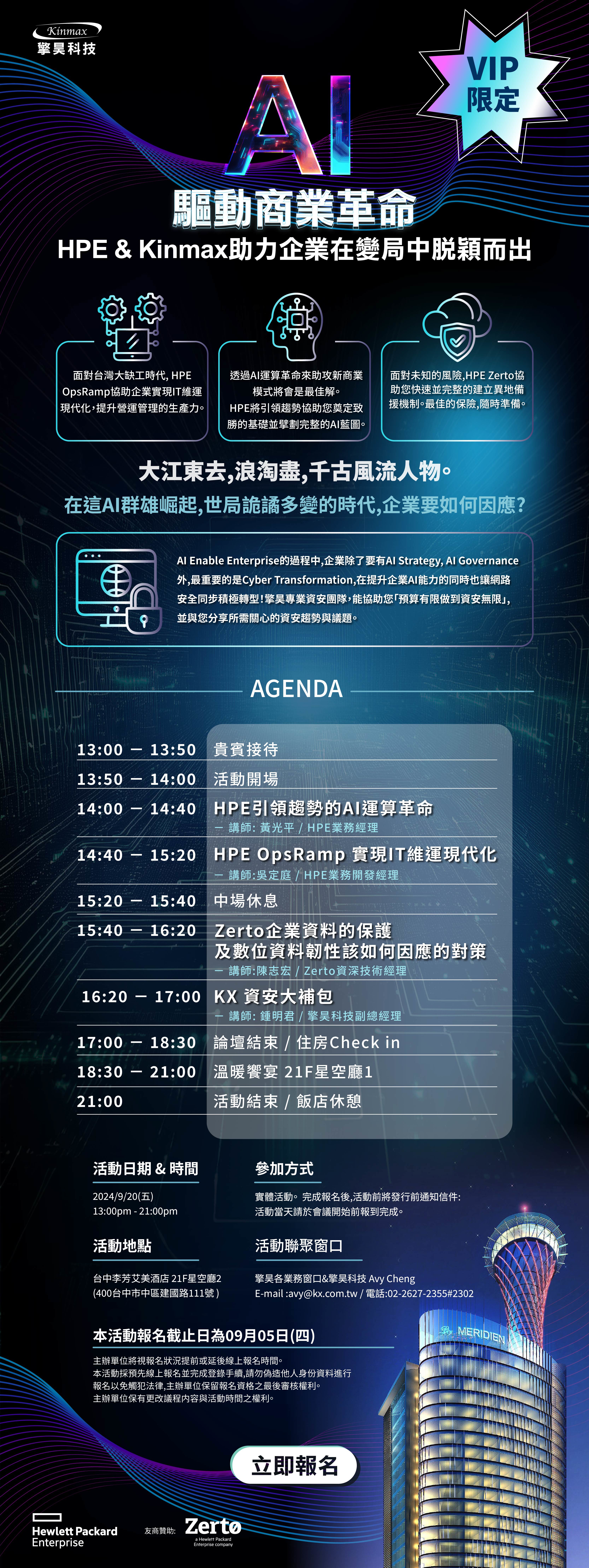 活動訊息: 【AI 驅動商業革命】VIP企業論壇 2024.09.20 (五) 台中