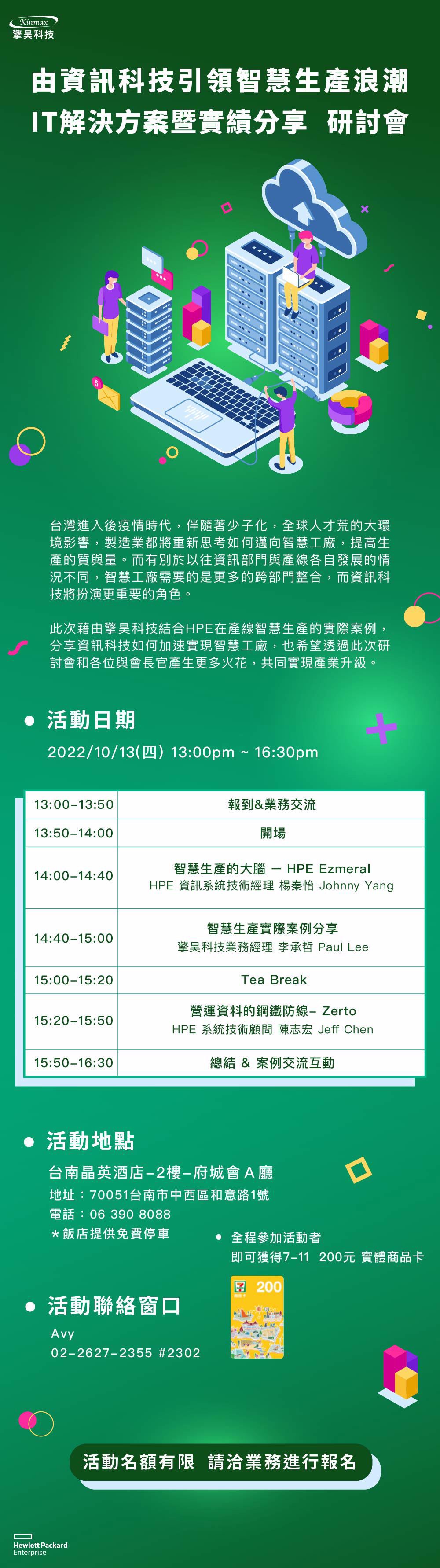 活動訊息:【由資訊科技引領智慧生產浪潮 IT解決方案暨實績分享】 2022.10.13 (四) 台南