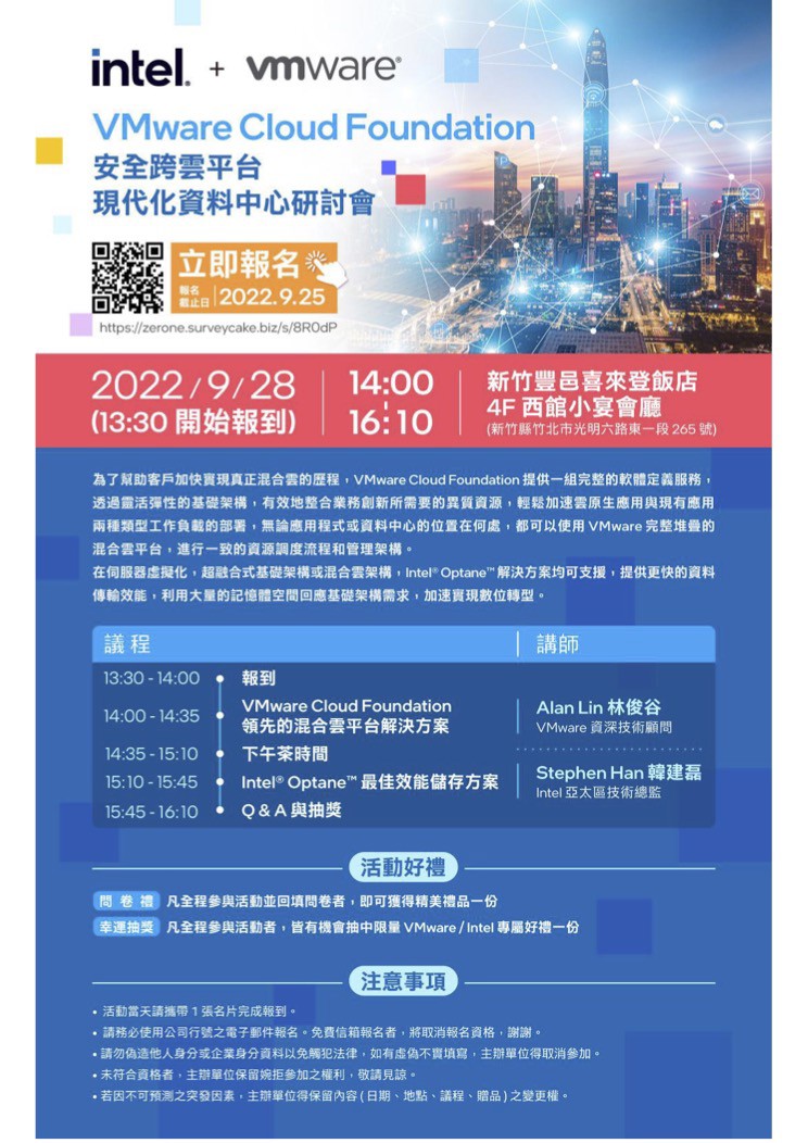 活動訊息:【VMware Cloud Foundation 安全跨雲平台 現在化資料中心】 2022.09.28 (五) 新竹