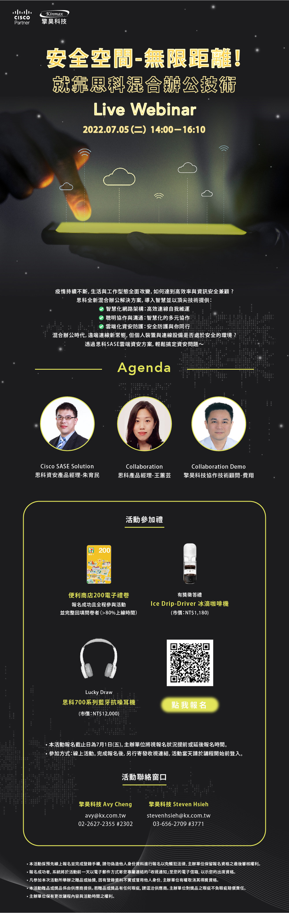 活動訊息:【安全空間-無限距離 就靠思科混合辦公技術】Webinar 2022.07.05 (二)