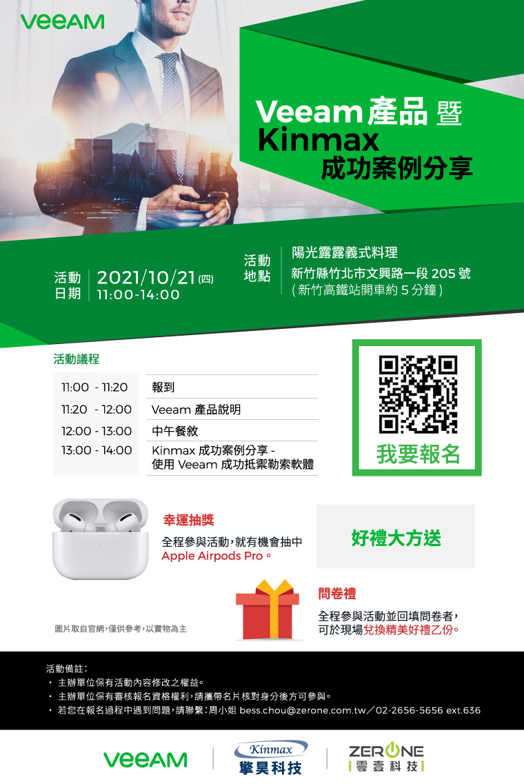活動訊息:【Veeam產品暨Kinmax成功案例分享】2021.10.21(四) 竹北