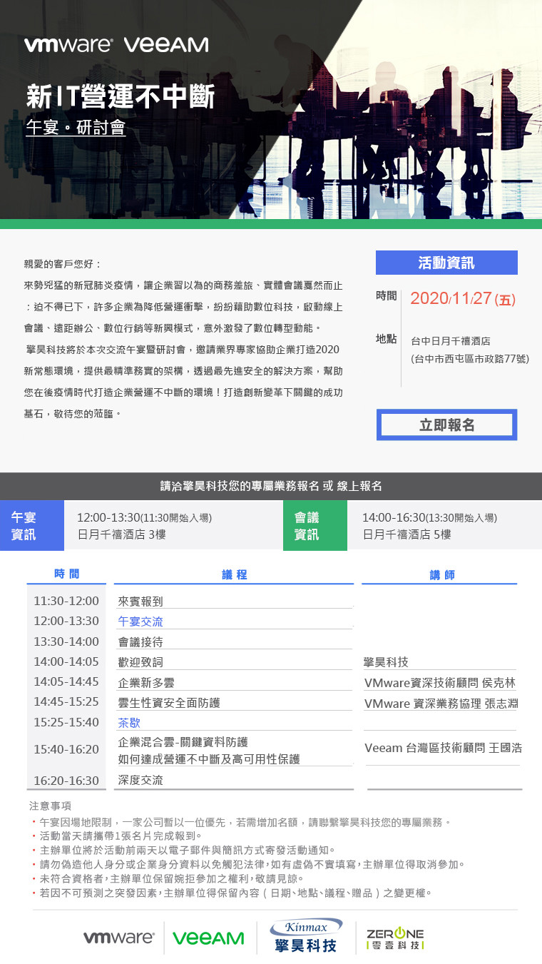 活動訊息:【新IT營運不中斷】午宴•研討會 2020.11.27(五) 台中
