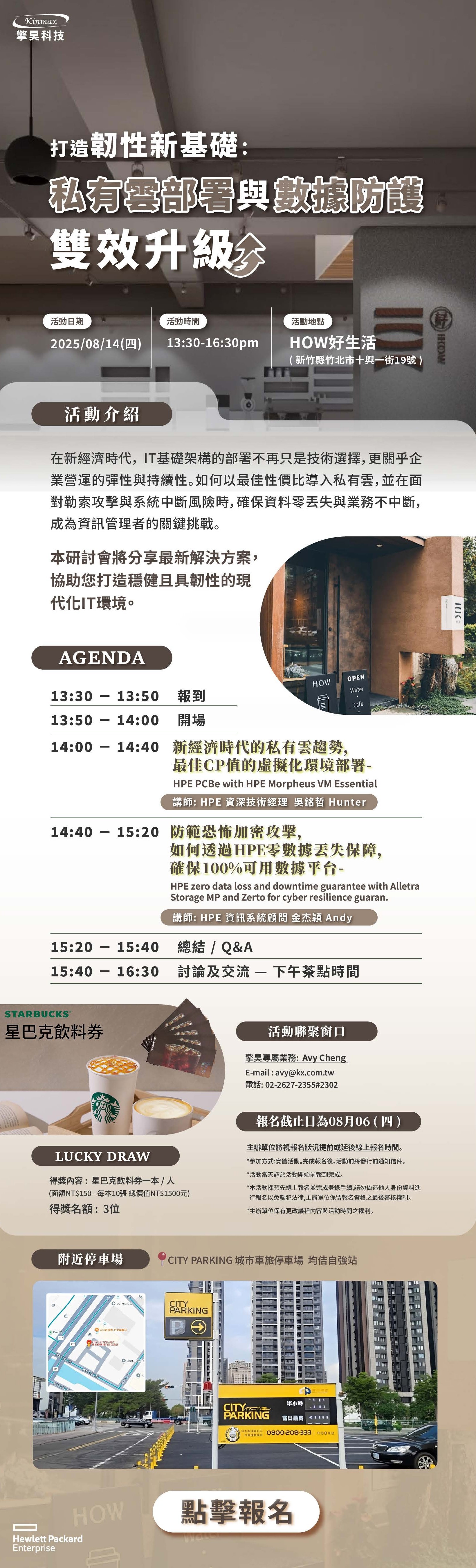 活動訊息: 【私有雲部署與數據防護雙效升級】研討會 2025.08.14 (四) 竹北
