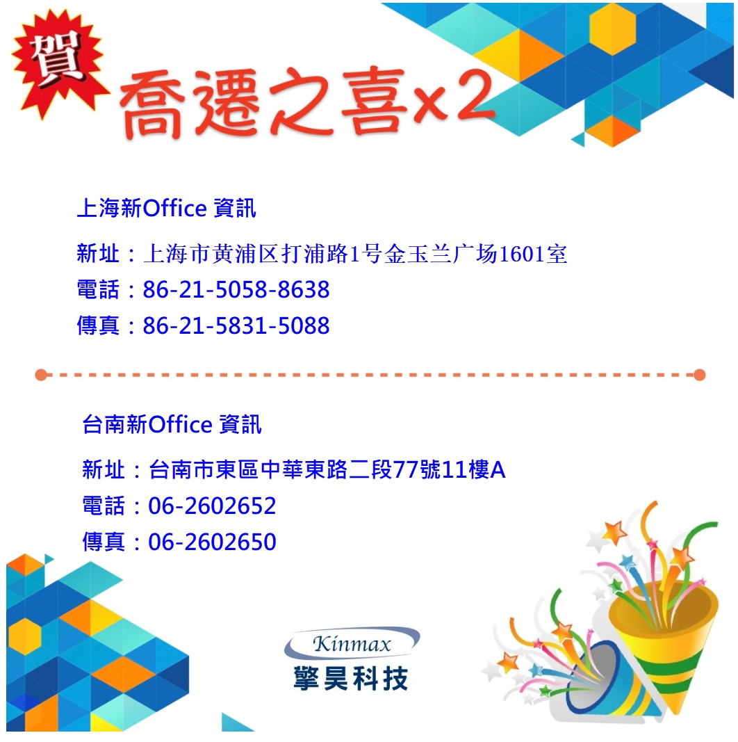 喬遷之喜:上海&台南 New Office Info.