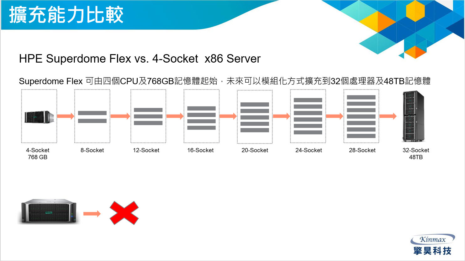 - 可提供垂直擴充能力,未來效能不足可原機擴充最大到8倍的運算能力,有效節省投資。