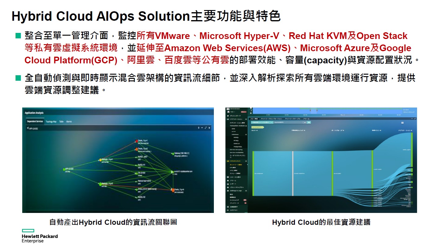 HPE Hybrid Cloud AIOps 為企業混合雲的佈署與維運管理提供了完善的解決方案: