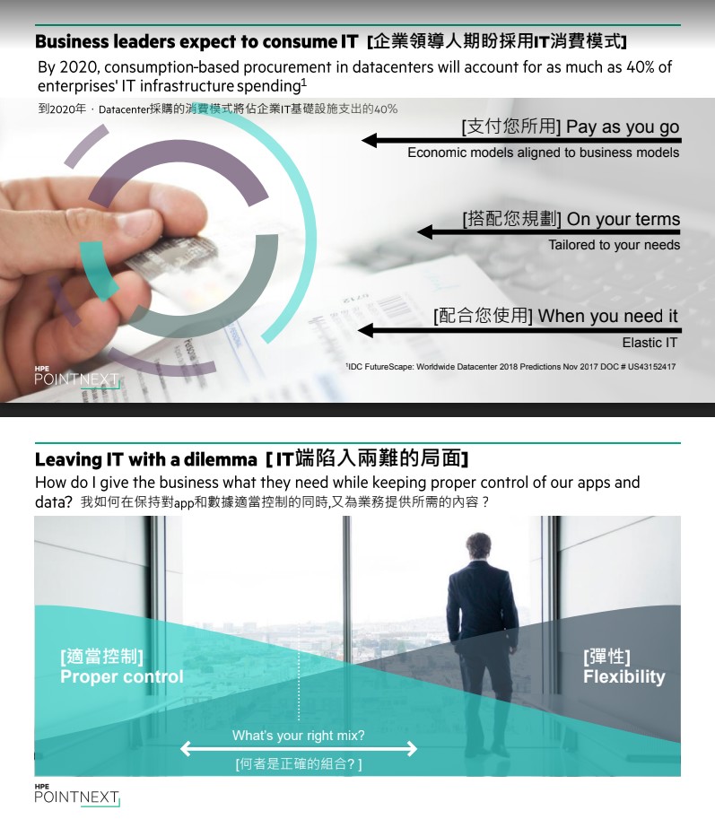 要如何在選擇雲架構的可擴展的便利與在可預知掌控的前提之間取得最好的結果呢?其實您的IT基礎架構使用HPE的彈性容量服務是可以兩項兼得擁有!!